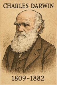 チャールズ・ダーウィン(1809–1882)は、イギリスの自然科学者・地質学者であり、進化論の父として知られています。若い頃は医師や牧師を目指すも、自然観察への情熱から博物学に傾倒。1831年から約5年間、海軍測量船ビーグル号に乗船し、南米やガラパゴス諸島などを巡る航海で多様な動植物を観察・収集しました。この経験が、後の「自然選択による進化」という理論の着想につながります。